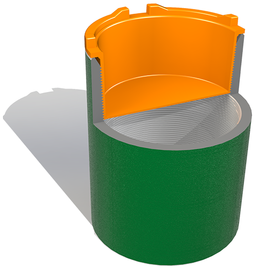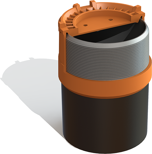 “Self-Jamming” tapered wedge added to support the inner circumference of pipe. Wedge improves impact performance and keeps protector firmly in place. (Patent-Pending)